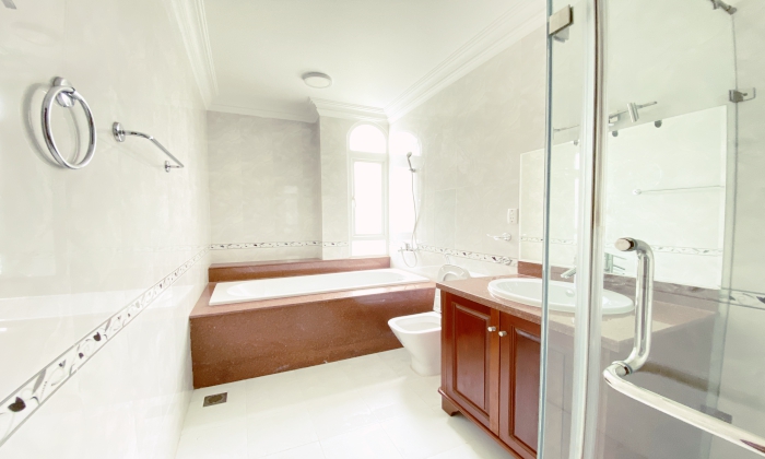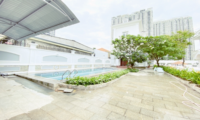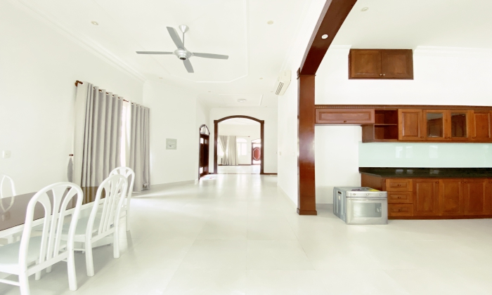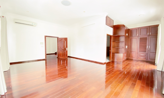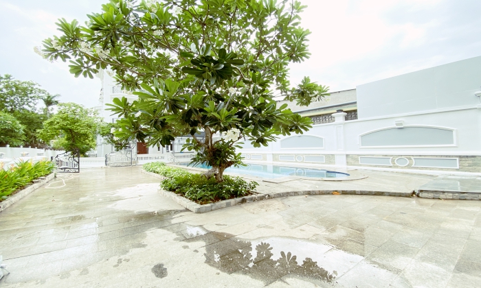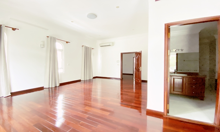 Villa for rent in Thao Dien featured: Unfurnished villa for rent, with big garden, pool 04 Beds, 4bths, 1 Living room and 1 Study room, Kitchen, 670SQM floor plan, have nice garden.