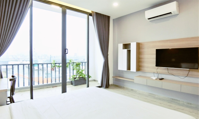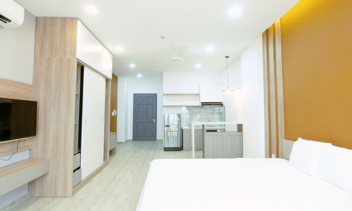 Studio Katar Serviced apartment for rent offers 35SQM, and the rent is: 13,500,000VND/month. Standard services included: cleaning twice a week, change linen 1 time a week, internet wifi, security 24/7, no curfew time. You will pay extra for electricity and water fee, drinking water. A New Serviced apartment for rent location is the most convenient for teachers who is working in ICHCMC school and Thao Dien Ward.