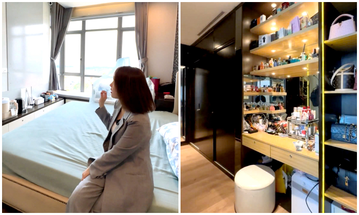 The apartment is designed in a sophisticated European style, complete with curtains and large windows that provide ample natural light. It offers direct views of the the vibrant urban landscape from both the living room and bedrooms.