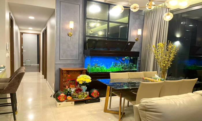 This fully furnished three-bedroom apartment for rent at The Nassim Thao Dien in Thu Duc City offers a luxurious living space with breathtaking views to urban. Located on the 9th floor, the unit has a generous 133sqm included 03 bedroom and 01 Study room of usable area, featuring: